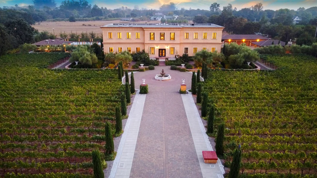 Welcome to Villa Testarossa, a majestic Tuscan-Mediterranean home with luxury appointments that make it a work of art. On the gateway to historic Sonoma and Napa Valley and surrounded by mountain and vine views. 14,545 sq.ft. home with 6 ensuite bedrooms, 8 baths, a generous-sized gourmet chef's kitchen with premier appliances and butler's pantry. Huge formal dining room and media theater. Spacious and open living room conducive of having a large gathering. Phenomenal floor plan with entertaining in mind. A private library and 2 offices, exercise room. Garden cutting area and green house/pavilion. A bocce ball court, spacious patios for dining alfresco and plein air by the outdoor fireplace. 6 car garage and 3 more separate for hobby winemaking. The home captures hearts and dreams for multi generation and/or groups for togetherness. There are 3,400 Chardonnay vines and 33 olive trees added to the mature landscaping and beautiful gardens all on 4.65 acres. Designed by the owners that like the finer things in life. Villa Testarossa is one of a kind.