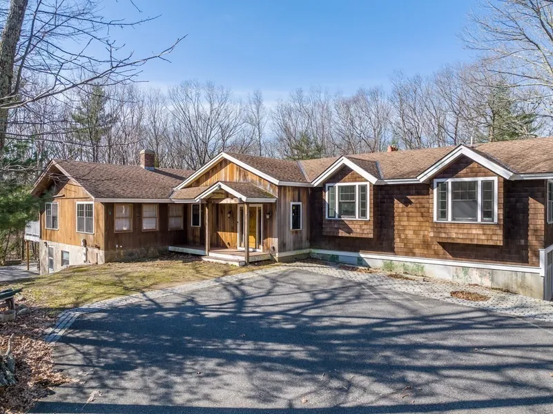 Magnificent contemporary nestled in over 4 acres of privacy. Breathtaking open floor plan, pool, chef's kitchen, and radiant flooring, an entertainer's dream come true! Completely renovated North wing with master bedroom, attached nursery, and skylight bedroom with ensuite bath. Stunning living room beside chef's kitchen and dining room come together for a one-of-a-kind entertainment experience, overlooking the in-ground swimming pool. Versatile finished walkout basement can be used as a game-room and guest bedroom, or as an in-law apartment with independent entrance and carport. Two car attached garage plus four car detached garage with large workshop. Set far back from main road, offering ultimate privacy on 4.65 acres of serene property.