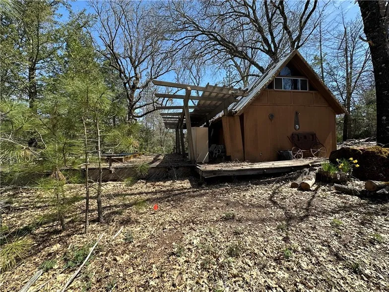 Cozy Cabin nestled in the woods. Great retreat property. Over 4 Acres of land to roam. Cabin a open floor plan that includes a fireplace and kitchen on the main floor and a loft bedroom.