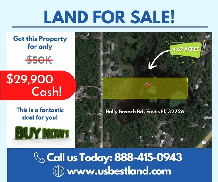 Research Parcel InformationFrom Eustis City, Head east on E Orange Ave toward S Eustis St. Continue onto FL-44 E, then Turn left onto Scrub Oak Ln, then Turn right onto Holly Branch Rd.