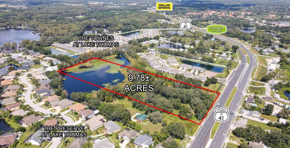 PROPERTY DESCRIPTION - This opportunity is to purchase 9.79 acres on US 41 (Land O Lakes Blvd) in Pasco County, FL, featuring 4.68 acres of uplands and approximately 435 feet of road frontage, with visibility to 40,000 daily vehicles. Zoned C1 (Neighborhood Commercial) and PO1 (Professional Office), the property provides flexibility for various uses and has a special exception approved for self stroage use. It is located just south of Lennar's 218-unit Townes at Lake Thomas and north of The Preserve at Lake Thomas, offering prime proximity to residential developments.