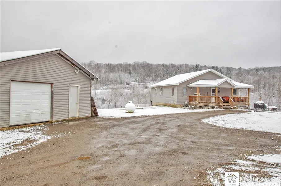 The highly sought after, rarely found property is here. The hobby farm on nearly five acres in a country setting yet close to conveniences. The newer build in the Frewsburg School District. The place you can call home. This property sits on nearly 5 acres of pure seclusion. For horse lovers there is a 4 stall barn. Each stall is 10x10 and an additional tack room of 4x10. Horses(or other animals) venture out to an approximate 3 acres of fenced pasture(solar powered electric protection). Currently boarding? The savings alone is worth the investment! Additional structures include an oversize 24x24 garage and 10x12 shed. There is a spring fed pond on the property as well. Your eyes will pop upon entering. The home is much larger than it appears. The main living level consists of a cozy great groom. The kitchen includes epoxy counters, appliances and large pantry. A dining are separates the kitchen and living space. Master suite with lots of closet space. Additional bedroom and den on main level as well. Lower level has 3rd bedroom, laundry and bonus rooms. Enjoy incredible views front the front porch and rear deck. More than a home..It's a Lifestyle!