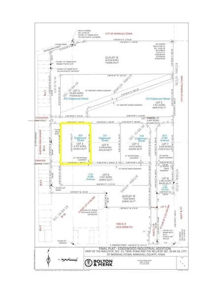 Lot 3:This is an industrial building lot that offers great potential for commercial ventures. Situated in a prime location, this lot provides ample space for establishing an industrial facility. With a sizeable area and convenient access, it presents an excellent opportunity for various industrial operations. Its strategic position makes it an ideal choice for businesses seeking a centralized location. This building lot is poised to accommodate the needs of diverse industries, making it a promising investment for those seeking to establish or expand their industrial ventures. These lots have been designed so the City of Marshalltown s storm water detention requirement is met off-site through a City installed, owned, and maintained storm water regional retention basin. The City s requirements for storm water detention, will not be required on these lots. Additional information provided ...