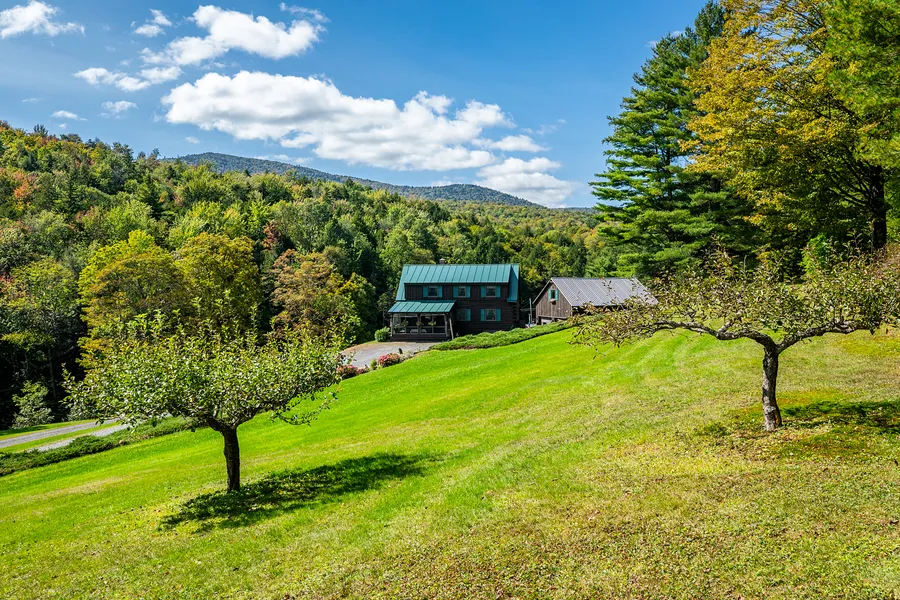 Offered on the market for the first time, this lovely custom-built log home is perched atop the most beautifully landscaped pastures and meadows. Consisting of mature apple trees the deer are sure to stop by for a visit, lovely berry bushes, a beautiful pond, and four barns on the lower level to house every animal or toy your heart desires. A homesteader's dream, if you will! As you enter the home through the large screened-in porch, you can hear the sound of the babbling Gilead Brook, for sure one of the best seats in the house. Except the cozy and warm kitchen calls you right in as well. Consisting of a nice breakfast bar, the kitchen is also open to the dining area. The main level offers a bright and warm open space with the Harmin Pellet Stove centrally located, it heats the entire space greatly during those cool fall and Winter nights. Including the upstairs sleeping or reading loft. Also on the main level is a bedroom and three-quarter bath with laundry. As you make your way to the second level you'll see where the current owners opened up the third bedroom to create a beautiful loft area, perfect for guests or enjoying your favorite book and cup of tea. There is also the large second bedroom with multiple closets, both rooms of which overlook the beautiful apple orchard area. There is a two car garage with access to the storage area, great for stowing your riding mower, or potential for a nice game room. Truly a slice of Heaven right here in Central Vermont.