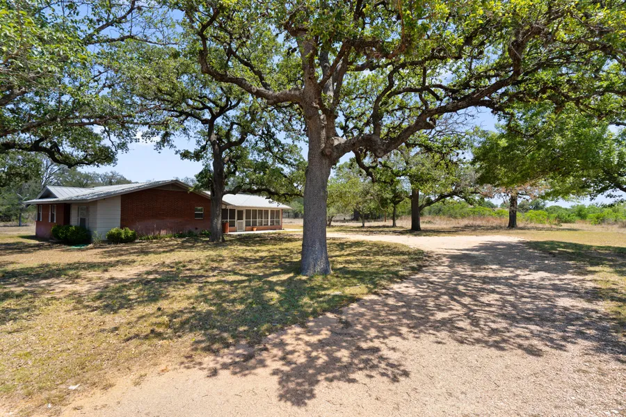 A slice of Hill Country heaven with long-distance views from the 4.7 unrestricted acres. Surrounded by large ranches and located within 5 Minutes from downtown Johnson City, Texas. One of the most highly sought after towns in central Texas. Full of natural beauty, the 80's brick home offers the ultimate Hill Country experience. Consisting of 3 bedrooms, 2 full bathrooms, and a large screened in porch. On the property you will find a 2 car covered carport with large storage room, a chain link dog run and a high-fenced gardening area. The perimeter of the property is fenced with it's own gated entrance off Ranch Road 2766. The possibilities are endless. Whether your looking for a weekend get away, homestead or income producing property.. this is it.
