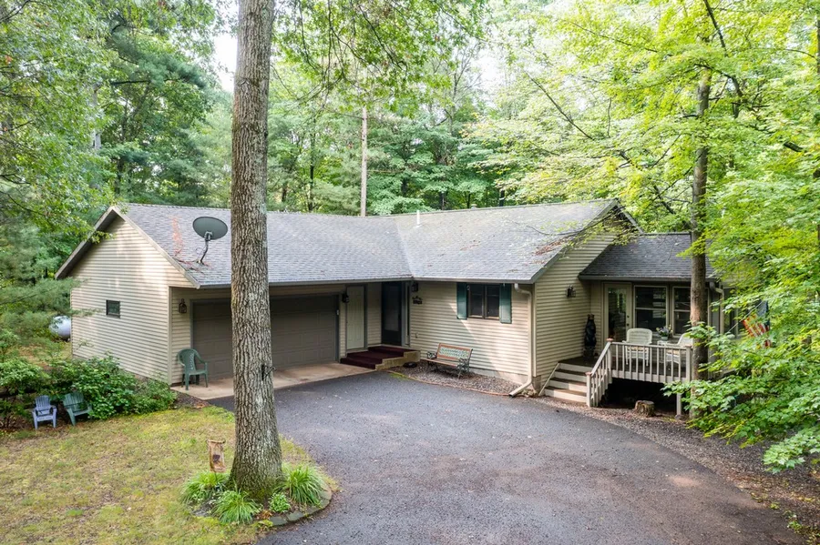 Welcome to your new forever home! 3BR, 2BA home has an extremely private and serene setting with 4.72 acres and 246 feet of frontage with a wild rice buffer on this sportsmans lake. Enjoy one level living with a walkout lower level-a great floor plan for guests. Open great room with hickory wood floors on the main has a 2-way fireplace, sunroom with wood burning stove, master bedroom and bathroom with a tiled walk-in shower. Lower level has 2BR, 1BA, family room, den and access to a spectacular screen porch that spans the width of the home with a beautiful wood ceiling. Attached garage is heated and insulated. More storage outside- insulated detached garage, shed and carport. Large flat yard leading to the lake is a park-like setting with mature trees and fire pit area. Fiber optic connected to the home and when youre away enjoy the wifi thermostat! Privacy paired with easy road access a...