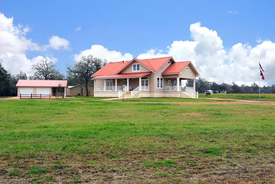 This stunning home is minutes from the heart of Round Top. Home features a huge cook's kitchen with stainless steel appliances and a wonderful island. Wood floors throughout the home as well as high ceilings. The three spacious bedrooms and two and a half baths are pristinely done. The 2-car garage was constructed to also serve as a guest cottage with kitchen and bathroom plumbing roughed in.