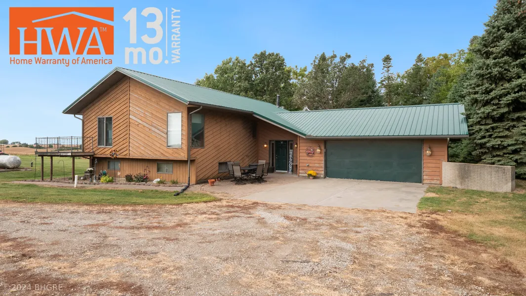 This amazing 3BR, 2BA 2 car garage attached & 2 car detached garage, there is plenty of room for all of your vehicles & storage needs. Plus, w/ a massive 50x60 metal building w/ a concrete floor, you'll have endless possibilities for hobbies. Step inside & be greeted by an open concept LR, DR, & kitchen. Kitchen has custom wood cabinets that have storage for all of your essentials. Brand new stainless steel appliances w/ a huge center island perfect for prepping meals or serving family dinners. Oversized primary BR w/ abundant natural light & huge walk in closet. Downstairs you have a cozy brick wood-burning fireplace living room - perfect for those chilly nights, w/ sliders leading out to the backyard. This property also features multiple sheds including one w/ 16x50 - perfect for storing machinery or equipment - as well as 2 machine sheds measuring at 20x32 & an impressive 50x60x14 pole building. With so much additional space available on this property, there's no limit to what you can do! Take advantage of having a U-shaped driveway providing easy access in & out while leaving plenty of room for kids to play outside safely. And speaking of outside fun, imagine spending summer days lounging by your own pool or watching little ones play on a swing set in the spacious backyard. Located just 7 mins from the charming town of Grinnell & less than 4 mins to Interstate 80. 13 Mo HWA Platinum Home Warranty included!