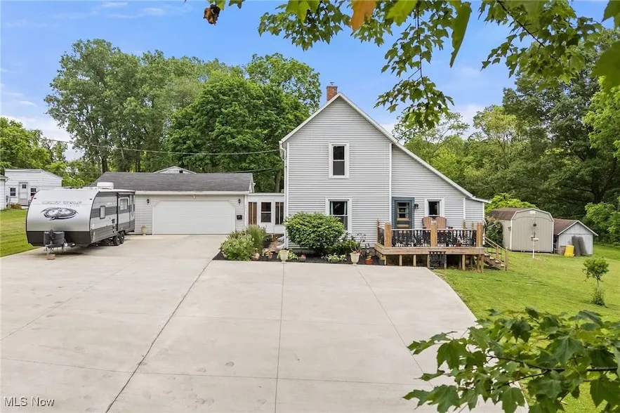 Welcome to this adorable 2-story home nestled on 4.7 acres, offering the perfect blend of open space and wooded privacy. With 3 bedrooms and 1.5 bathrooms, this home has a clean, down-home feel that s both cozy and inviting. Inside you will find a warm and well-maintained interior with primary bedroom and laundry on the main floor. Outside, enjoy peace and beauty an open yard perfect for play or gardening, with serene woods to the south adding privacy and natural charm. Unwind on the back deck, with a decorative pond that sets the scene for quiet mornings or evening relaxation. Recent updates include new roof and driveway (2021) new windows (2018) new front deck 2023. This property offers comfort, character, and room to roam. Don t miss your chance to make it yours!