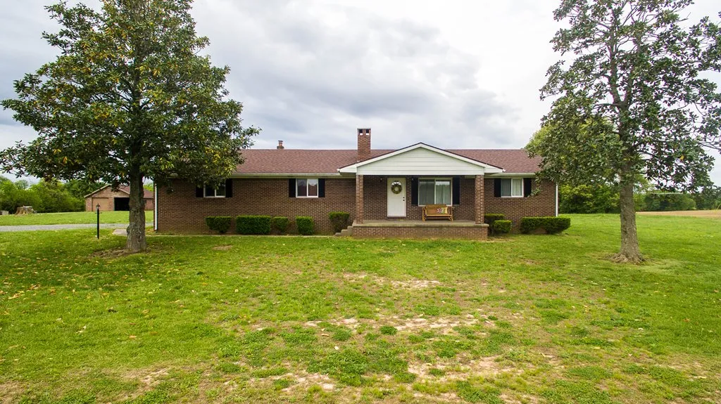 ACRES boasts many updates! Spacious kitchen with plenty of cabinet space! Back-to-Back fireplaces in the living room and family room (one is wood burning and the other gas logs). Generously sized bedrooms. Laminate flooring throughout; there's no carpet in this home! Covered front porch and back patio. Besides the 2-car attached garage, there is a 2-car detached garage and outbuilding. The home is wired for a portable generator; hot water heater can be converted to gas, if desired. Most of the acreage has been farmed until this past year when seller converted the entire grounds to yard space.