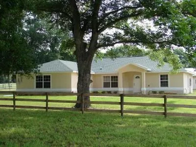 BRAND NEW MINI FARM. Never lived in CBS home with vaulted ceiling, eat-in kitchen, inside laundry, pantry. Master has trey ceiling, his/her walk-in closets, large bath. Open French doors from living room to covered patio & screened pool--ideal for entertaining. Oversized 5 stall center aisle barn with 2 tack rooms, wash stall & overhang for equipment storage. Property has board fenced paddocks & latge shade trees.