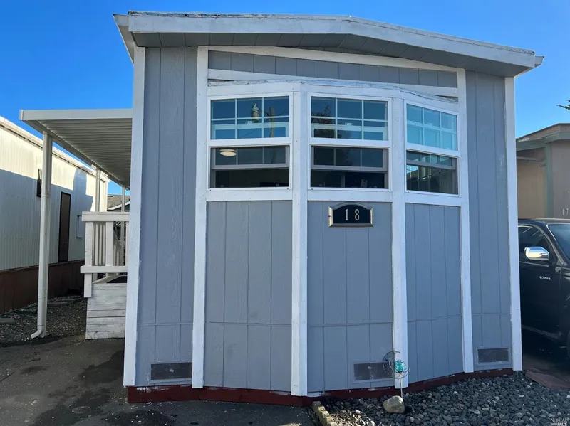 Lovely one bedroom one bathroom mobile home in a great location. Close to shopping center, dog park and easy freeway access. Updated with new flooring, windows, doors, siding, stairs, awning, interior and exterior paint. Low space rent. Space to park one car at the home and one assigned parking space on the parking lot.