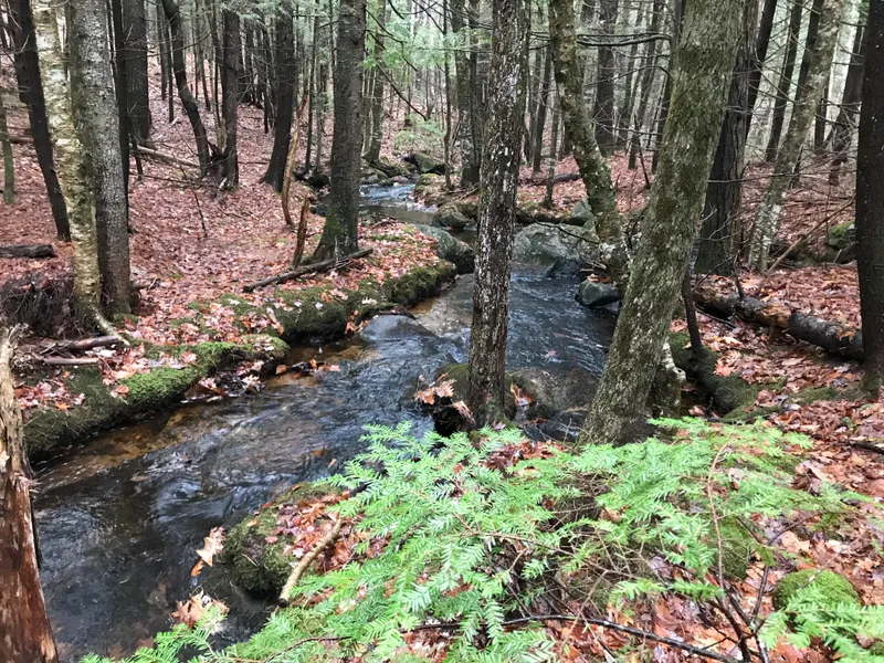 A RIVER RUNS THROUGH IT...Well actually, an energetic, bubbling stream provides the natural, soothing background soundtrack to this wonderful parcel of land. This Goldilocks property, at 4.8 acres, is not too small, not too large, but just right to build the primary residence or vacation home of your dreams. With lots of trees, a hilly terrain and an old New England field stone wall, this lot exudes country charm, tranquility and privacy...it even has direct access to hiking and King Pine cross country ski trails. And, talk about location! This gorgeous corner lot is less than one mile from family-friendly King Pine Ski Area (for winter activities), less than five miles from the Madison residents-only beach and boat launch on peaceful, picturesque Silver Lake (for summer activities) and less than a twenty minute drive to North Conway with it's myriad array of restaurants, pubs, outlets, ...