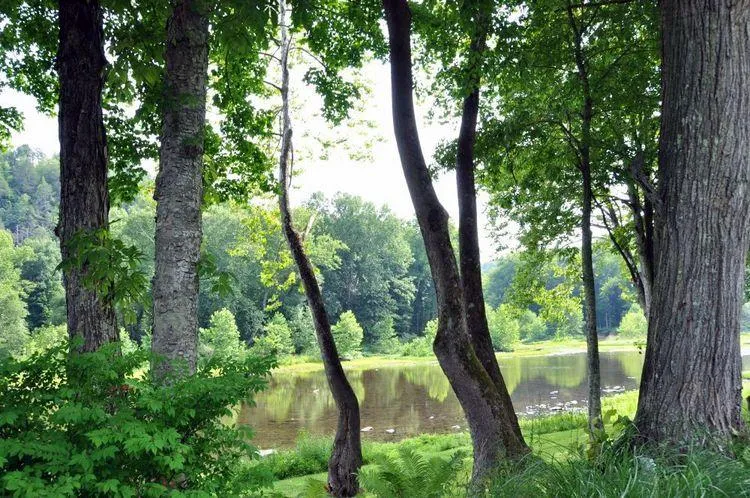The 4.8 acres is level to gently rolling and has Tulip Poplar, Red Oak and Sycamore trees that are over 150 years old lining the river bank. A lovely Chinese chestnut tree produces of pounds of chestnuts each year that can be roasted or eaten right fresh right out of the pod. Some nice Black Walnut trees near the river trail drop hundreds of nuts each fall season and can be added to fudge or cakes for a nice late season snack.