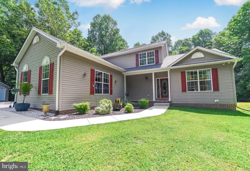 BRAND NEW ROOF!! Charming Custom Built Colonial with over 4,000 square feet nestled on a nearly 5-acre private wooded lot! Featuring THREE TOTAL MASTER BEDROOMS (each with with their own attached bath), 4.5 TOTAL baths, 2-car side entry attached garage and a fully finished basement with a full bath. Gorgeous foyer/entryway with beautiful floors. Separate dining room with stunning wood laminate floors, crown molding and chair railing. Great/Family room off from the kitchen featuring a tray ceiling, ceiling fan, recessed lights, wood laminate floors, nice bright windows for lots of natural lighting and French-door leading to outside deck. GORGEOUS Kitchen features 42" cabinets, granite counter tops, back splash, built-in microwave, wall oven, island stove top, newer refrigerator, eat-in table space, bump out, walk-in pantry and a breakfast area with bay window. 1st FLOOR LEVEL MAIN MASTER BEDROOM suite with a bay window, bump out, a HUGE walk-in closet and an attached SUPER/MASTER BATH which features a separate soaking tub, separate shower and his & her vanities/double sinks. Main level powder room for convenience. Laundry room on main level with full cabinets and wash sink for all your laundry needs. Upper level features TWO MASTER BEDROOMS both with attached FULL BATHS and great closet space. FINISHED BASEMENT with walk-out features recessed lights, a recreation room, bar area, full bathroom, and a large bonus room that can optionally be used as office space, a 4th bedroom or exercise room. Over-sized attached side loading garage. Long paved driveway offers additional parking spaces. Large low maintenance backyard entertainment deck - great for BBQ'ing and entertaining family and friends. Large shed/detached garage with windows, access door plus a large garage style access door is great for storing lawn equipment, hunting equipment, bikes, tools, canoes, fishing equipment, gadgets and more! Nicely landscaped wooded lot surrounded by trees for great privacy and seclusion! Conveniently accessible to sought after schools, military sites, shopping, restaurants plus more! This charming home with lots of updates and great space inside and out..including a NEW ROOF - is a MUST SEE!