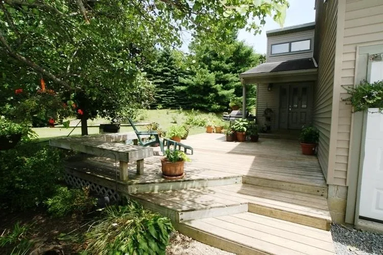 Secluded custom home on beautiful rolling lot offering mature shade trees, woods, small stream, sledding hills, beautiful flower beds, and landscaping. This five bedroom, two and a half bath home offers many built-in bookcases and newer wood laminate floors. 24' x 32' pole barn has concrete and electric. Located on four plus acres.