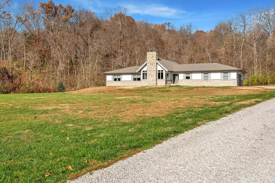 Absolutely gorgeous 3 bedroom ranch home nestled on nearly 5 acres of scenic wooded land within one mile of Historic Maeystown, Illinois! Step inside to find the sprawling family room featuring a vaulted ceiling, exposed wood beams, great natural light, & a beautiful stone fireplace. The family room leads to the well appoint eat-in kitchen boasting ample cabinet storage, pantry, & dining area w/ vaulted ceiling. The main floor master bedroom suite features lovely scenic views & attached master bathroom. Also on the main level find generously sized bedrooms 2 & 3, full hall bathroom, half bathroom, and laundry room w/ ceramic tile floor & mop sink. Other items of note include the oversized heated 2 car garage / workshop which can accommodate up to four vehicles, full unfinished basement with generator, roughed in plumbing, additional deep sink, chest freezer, and a wood burning stove. Als...