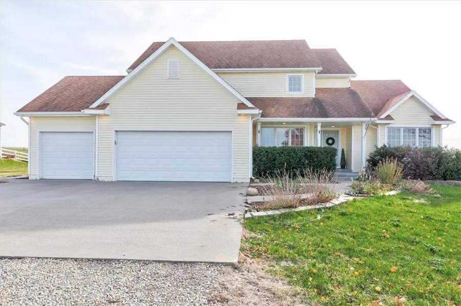 Calling all horse lovers! Come home to this beautiful 1.5 story walkout on almost 5 acres in SE Polk Schools. Just under 4,000 sq ft finished. 1st floor master with a tub, shower and walk-in closet. Open kitchen with plenty of cabinets. Double wall oven with gas cooktop. Upper level has 3 bedrooms and 2 bathrooms, roomy closets and plenty of storage. Walkout basement has a bonus room perfect for a theatre room or bedroom, and plenty of room ready to be finished. 40'x60' outbuilding with 4 horse stalls is perfect for horse lovers! With beautiful white fencing around the pasture, this acreage is perfect for those wanting country living yet still be close to Des Moines!