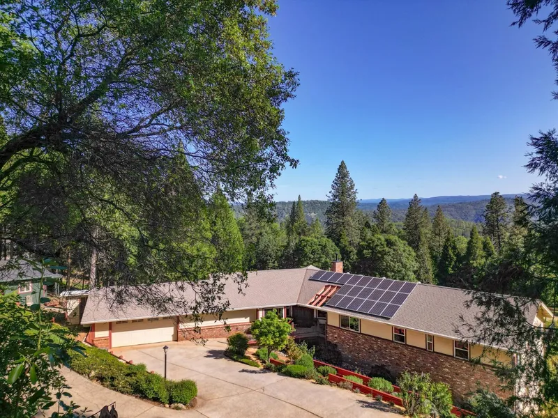 PANORAMIC Sierra and Ridge Views from this beautifully remodeled 2,746 SF home located within minutes to downtown Historic Nevada City! Level access into this great home crosses over a delightful Catwalk into the formal entry with a fantastic light & bright floor plan! Step down living room has open beam vaulted ceiling, hardwood floors, Doug fir trim & accents, and a delightful brick fireplace! Formal dining room can seat 12 comfortably but also makes a great office with high speed internet to making work from home a joy! Huge Cook's kitchen has high end stainless appliances, granite countertops and clear heart cherry cabinets with loads of storage! The gated entry leads down to great RV or boat parking area! The lower level has a separate entrance and can be a sweet little guest unit with a studio & separate kitchen with full bath, plus there is a separate 275 SF building that would make an adorable art studio, guest quarters or meditation room! The huge composite deck is inviting large dinner parties overlooking the views! Solar is paid for and offers extremely low utility bills!! Piped treated NID, High speed Internet and Generac backup generator offers easy country living! Located in the highly desirable Cement Hill Rd area, this property feels like a nature reserve!