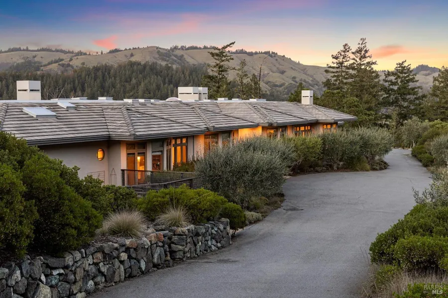 On a gated mountain road, surrounded by stunning natural beauty, you will discover a world-class residence that inspires adventure amidst unmatched luxury; a sanctuary where you can explore endless trails by day, and countless stars by night. Welcome to 6 Deer Camp! Positioned atop a sun-splashed knoll, on 4.86 acres, the property features breathtaking views and is adjacent to 200,000 /- acres of open space preserve. Imagined by a renowned designer, the home was custom-built w/ timeless style, bespoke finishes, and precision craftsmanship. Splendid scale & an abundance of natural light stream into the interiors which are laid out across one level of exceptional living space. They are centered around a dramatic foyer w/ a cylindrical skylight and limestone imported from France. Enormous chefs kit w/ 2 islands, limestone counters, double ovens, and 2 dishwashers open to a family room. The primary suite offers the ultimate escape with sumptuous dual bathrooms - one w/ a steam shower and the other w/ an elegant soaking tub. The sparkling pool/spa pool house overlooks dramatic vistas. Exquisite landscape w/ 20 olive trees, meadow w/ chickens & honeybees. Outstanding proximity to San Francisco, the coast, and all points between. Truly the ultimate Marin retreat!