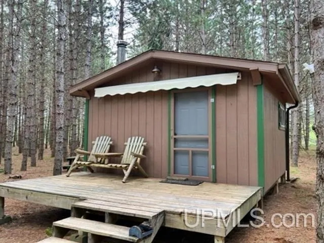 Secluded setting for this up north retreat! Clean, well maintained one room cabin on 4.86 wooded acres. A must see inside! Insulated with wormwood pine interior, plenty of cabinets, cast iron boxwood stove, and 100 amp electric with camper hook-up. As an added bonus, it's sold mostly furnished! The deck overlooks the tall pines and firepit area. Screened gazebo. Two sheds. And in a great rec. area with ATV trail access and its just down the road from public County Land