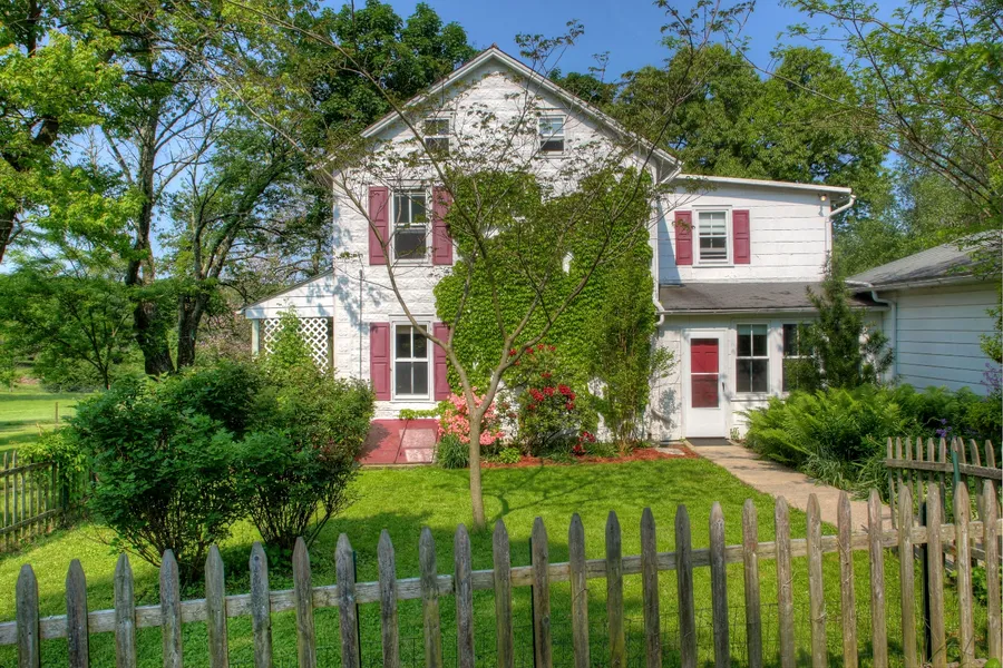Your options are endless; continue the farmhouse as a short-term vacation rental (current use) or as full time residence. The additional acreage is buildable. Enter the gates of the farm down a long paved circular driveway arriving at the 1870s farmhouse. A rare find to have a farmhouse set far back off a no outlet street. Once you arrive at the farmhouse either parked at the two-car garage or in front of the picket fence, enter the farmhouse through the mudroom then into the dining room. The dining room is part of the 1950s addition. A half bath is on the first floor with a galley kitchen and a pass through to the living room. The covered front porch is off the living room. Spend mornings with coffee and sunsets with a glass of wine enjoying the peaceful setting. The stairs in the living room lead to three bedrooms, a full bath, linen/walk-in closet as well as a walk up attic with ample storage. As the farmhouse is currently used as a permitted rental/Air B&B, the recreational room was turned into an office but could easily be reopened to add additional square footage to the house. Included in the 4.9 acres is an small orchard, pole building, 2 car carport, detached workshop with chimney for a woodstove. There is plenty of opportunity to have small animals such as sheep and chickens making an ideal farmette for the new owners. The additional acreage would allow for a horse and use the pole building as a small barn, the additional land is also buildable.