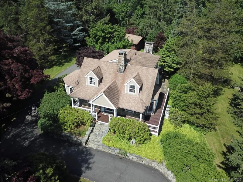 Beauty and grandeur describe this very special 3-4 bedroom 1940 home situated on almost 5 spectacular rolling acres of multiple gardens, mature plantings and trees, lush lawns, pathways and stone walls. The meandering circular driveway brings you to the welcoming entrance with wraparound cedar porch. Upon entering this beautifully renovated Cape, you will be captivated by all the windows and natural light, stone accent walls, extra wide moldings, stained glass windows and wide plank flooring, just to name some of the well thought out upgrades. This home is perfect for entertaining with its oversized kitchen/dining area, multiple rooms to relax in and French doors leading out to the bluestone patio with stone fireplace. Gourmet kitchen boasts a Thermador gas cooktop and grill, wall oven, double pantry cabinets and eat-at island. Family room and den with built-ins and fireplaces and a main level room perfect as a home office or guest room. Upstairs, you will find three bedrooms with ensuite baths. The spacious primary suite has gas fireplace, walk-in California closet and lovely bath with soaking tub, tiled shower and double sink vanity. And if this isn't enough, you will be wowed by the phenomenal stone wine cellar for all your favorite collections. Two cedar closets, generator hook-up, updated electrical service, newer driveway, roof and exterior paint. The picturesque barn can house two vehicles and offers a lower level for storage or to be used as a greenhouse. This is it!