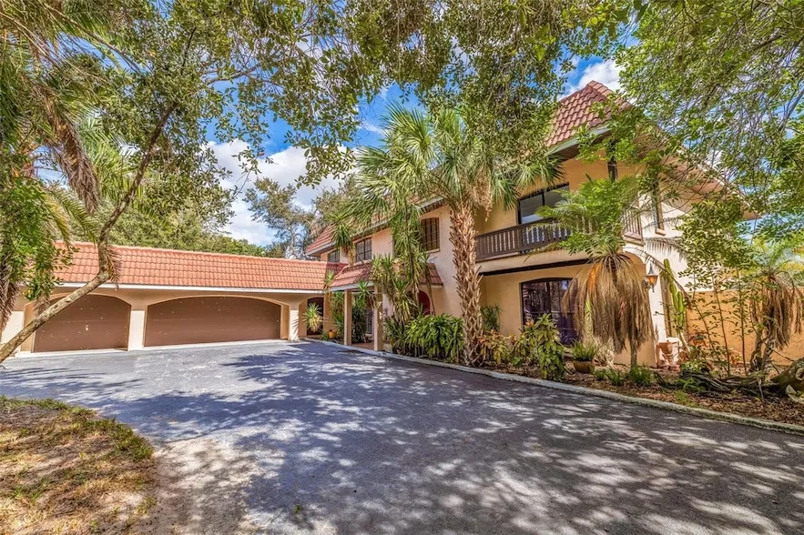 The Skyway Equestrian Center is on the market! This nearly 5 acre horse ranch is located in Palmetto, Florida, and is just waiting for your equestrian needs. The property is 4.9 Acres and is board fenced and cross fenced. The meandering paved driveway leads you around a pond with a footbridge to a 3,967 Sq. Ft. 2 story 5 bedroom, 3 bath, Mediterranean style home with barrel tile roof trin and flat roof and a 3 car attached garage. Home has a large eat-in kitchen and great room with a wood burning fireplace and an impressive entrance foyer. The kitchen has modern appliances, tile and island. Floor coverings are carpet and tile. upstairs are spacious bedrooms and an elevated deck spanning the width of the house. Out back has a big screened in porch overlooking the firepit, paddock, Vinyl clad log cabin guest house and barn. The cabin is 1 Bedroom, 1 bath and great room with modern kitchen. This cabin can be a guest quarters or residence for a farm manager. The crowning touch to this unique property is the 20 stall Horse Barn with tack room, 1/2 bath and water to the stalls. The barn has pavers for the common area floor and the stalls are full sized. The back of the barn leads to a fenced training circle. The location is a short drive to Interstate 275 and is equidistant to Tampa, St. Petersburg and Sarasota-Bradenton. Research indicates that a full service horse stall can rent in this area for $800-$1,000 per month. This is a real winner-You do the math. All sizes are approximate.