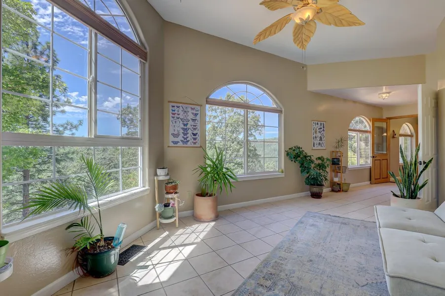 IMPROVED PRICE !! Motivated Seller !! 5 private acres with long range panoramic views, 2,942 sq. ft. home with attached garage and 1,772 sq. ft. fully permitted detached workshop, 3 bedrooms, 2 bathrooms, large primary bedroom and bathroom with private deck and addtional space for a home office, Owned solar system, 1,500-gallon water storage tank, Hardwood flooring & open kitchen/dining/living area, plenty of storage throughout the home, Expansive window-filled entryway, sitting room, and large covered back deck for viewing the sunset, Fully fenced yard with light landscaping and room for more, tons of natural light, and dual-pane windows throughout, Cement fiber siding on the exterior of the home, newly paved driveway and Less than 15 minutes to shopping & freeways. This is a beautiful, unique, and private home ready for its next caretakers. Welcome Home !!! Let's schedule a showing tod...