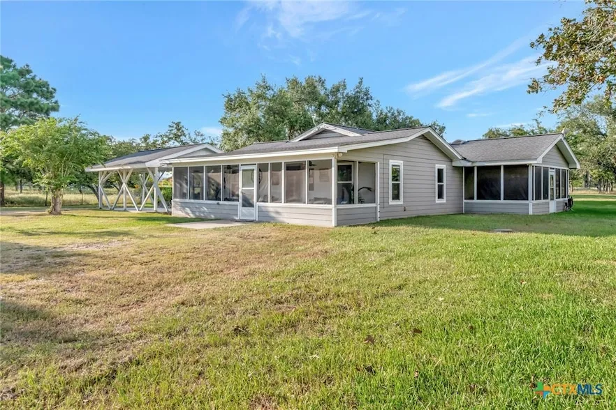 The wait is over, your private country retreat has just been found! Escape the hustle and embrace the tranquility of this spacious 3 bedroom, 3 bathroom home nestled amongst the live oaks. There are two primary suites... One boasts a large walk-in closet and recently remodeled bathroom while the other has a jetted tub! The living area is perfectly sized for gathering and the 2 large, enclosed porches are dreamy hangout destinations. The homestead is fully fenced with 4-inch square wire w/barbed wire perimeter, cross-fencing, and ag-exempt acreage. There's plenty of space for a few animals and exploring along with a large workshop for storage or projects! If all of this isn't enough, there's a lovely lake right down the road! With a septic installed 7/2025, and double pane, double hung windows installed in 2024, this home is ready for you to move in!