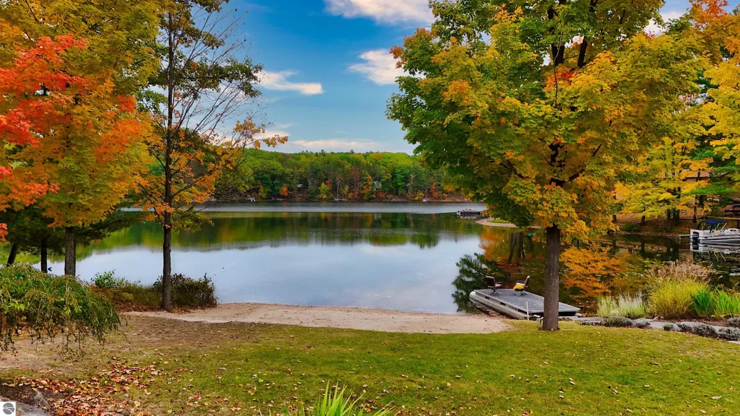 Private Setting with 182 Feet of Direct Lake Front and 4.96 acres on All Sports Chandler Lake with serene lake views from almost every room! There is ample room for friends and family with generous sized rooms, 5 bedrooms, office and 3 baths. The main level offers an open floor plan with foyer entry, living room, kitchen with industrial refrigerator/freezer and a purified water system, dining area, office, full bath, mudroom with washer/dryer hookup and the primary suite with walk in closet. You will be delighted to see a theater room for family movie night in the lower walk out level along with a separate thermostat, full bath with yet another washer/dryer hookup and 4 bedrooms. The lower level is also partially plumbed for an additional indoor or outdoor kitchen. Both levels have radiant in floor heat. Outside you will find the large sandy beach area, kayak launch, lush landscaping with two patios for entertaining, 5 convenient 120vac electrical outlets including two additional 30 amp hookup's for an RV/motor home, heated two car garage, 54X70 tinted stamped concrete parking pad/drive way and hot/cold water supply. The back yard offers the perfect spot for an ice rink, walking paths, a second building site (one split available) and plenty of room to build an outbuilding. All of this and you are just minutes from all of the conveniences of Traverse City, schools, churches, Munson Hospital, shopping, movie theaters, markets, Cherry Capital Airport breweries, ski hills, wineries and more!
