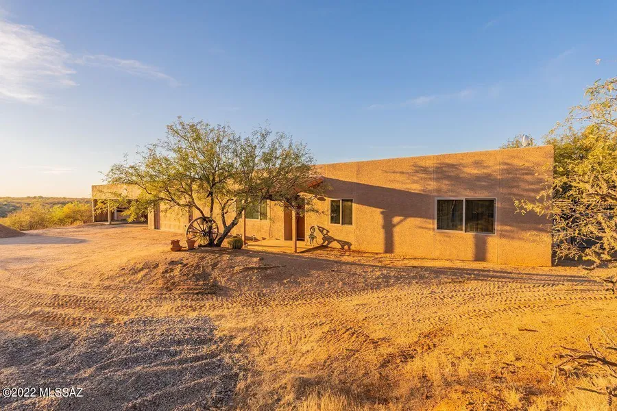 Magnificent mountain views all around in the astonishing Rincon Valley and this beautiful Santa Fe style framed/stucco construction home and property provide the lifestyle, wildlife, and natural Sonoran Desert Landscape. Great Living Room/Dining/Kitchen to take in the Rincon Mountains. Large covered patio to enjoy evening sunsets to the west. The sun rises over Rincon Peak to the east. Property comes with shaded horse facilities and corral. Cozy wood stove, comfortable central air conditioning with heat pump, and appliances convey. Master bedroom has adjoining bathroom with spacious walk-in shower. Plenty of room for RV. 1 car garage + 3 car carport. Attached dog run to house and patio makes it pet safe and friendly. Amazing home and horse property. Comes w/a 1 yr home warranty protection