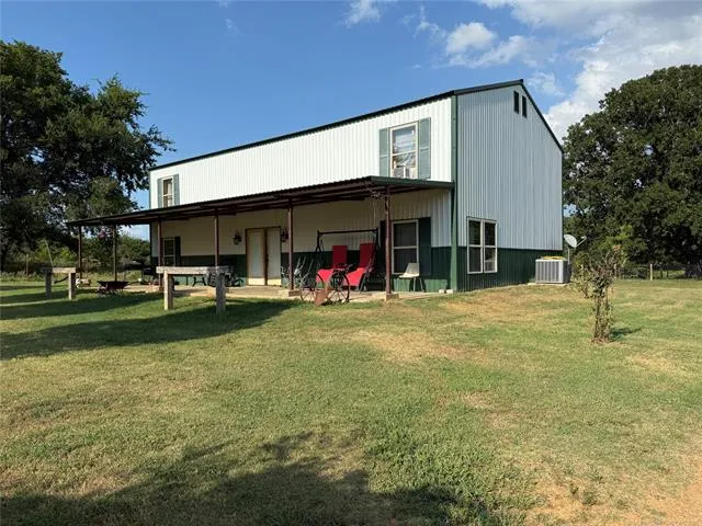 This is the BARNDOMINIUM you always wanted! Set perfectly on a 4.97 acre tract conveniently located close to Lake Eufaula. Just 7 miles from McAlester and Krebs. Large open living area downstairs and spacious area upstairs for a pool table and lounging. The kitchen sports a rustic homey look with an island and lots of space for your table! The primary bedroom is downstairs with a spacious on-suite with a huge shower and his and her closets. There is a nice size bathroom located off the living room for guest and family. The huge front porch is ideal for coffee in the mornings and barbecues in the evening. The land offers a pond for fishing, huge trees for shade, pasture for animals and lots of parking for vehicles and boats. This property is a must see property! Call today for your appointment.