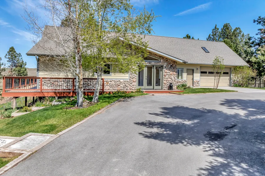 Perched just east of Corvallis, MT, this stunning one-level contemporary home offers sweeping views of the Bitterroot Valley and serene Cow Creek flowing just below all on 4.97 acres. With over 2,594 sq. ft. this home features 3 bedrooms and 2.5 baths, ideal for both everyday comfort. A roomy kitchen with an eating bar opens into vaulted living spaces with wood floors, a native rock fireplace, and expansive picture windows that fill the home with beautiful natural light. Step outside to a generous wrap-around deck, perfect for taking in the panoramic views & relaxing. Pine trees, pasture and don't forget your garden gloves ~ fabulous garden area, irrigation water rights, & fenced for animals. A two-car attached garage, plus a 2 car carport with workshop/storage area, provide ample space for vehicles and hobbies. Tranquil, functional, and surrounded by nature, yet close to Hamilton. First time on market. Ready to move right in! Fenced and cross fenced for animals. Lovely flower beds, raspberry and strawberry producing bushes, apple and apricot trees that will produce this year!