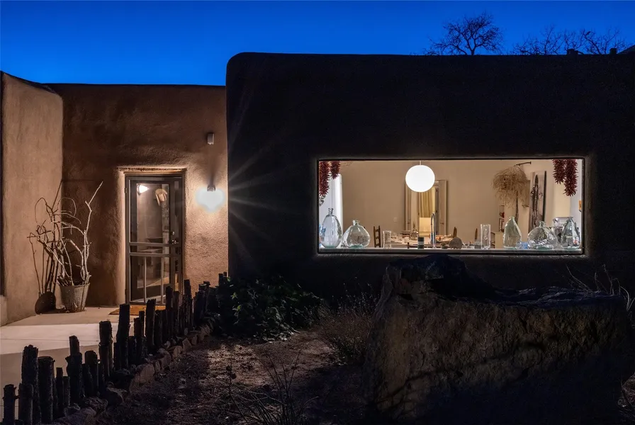 The stunning property at 4 Magdalen lies along the Galisteo Creek and is said to include the oldest home in the historic village. Previously owned by one of the founding families of Galisteo, it has been reverently renovated by the current owner who fell in love with the home, just like you will. The landmark home was partially built in the 1700s in the traditional pueblo style with adobe and rock walls, and viga ceilings. The collaborative remodel by the current owner and designer Patricia Larsen incorporates nature and light for a minimalist vibe. You enter the home under an expansive portal facing the courtyard that offers respite from the sun. The split floor plan includes 3 bedrooms, 2.5 baths, a guest kitchenette, versatile spaces that can be used for a home office or gym, a 2-car garage, and a grand room superb for entertaining. If you are looking for a zen experience when bathing...