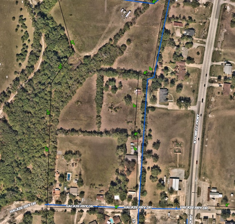 4+ acre ag exempt property, previously used for grazing, located within the Downtown Neighborhood District per Anna's Downtown Master Plan. Currently zoned SF-1, this property is eligible for rezoning review according to the Citys Future Land Use Plan. Access to Hwy 5/N Powell Pkwy is granted via a 24 ft easement (shown as dotted lines on aerial map). The rear of the property is adjacent to the trail system of Slayter Creek Park. This property is primarily open with level topography, some dense tree cover at the rear, and a seasonal creek with approximately .82 acres of floodplain. Connection to city water is available. According to the city's records, an 8 water line follows the eastern property line and a 12 sewer line runs through the creek. The property is perimeter fenced and contains an old livestock shed and storage building that are in poor condition and contribute no value....