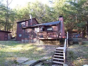 ... And tucked in amongst tall Hemlocks on 4 acres is where you' ll find your charming 2BR 2BA cottage. All of the simple joys of country living are yours to discover. Gather in front of a crackling fire in the impressive bluestone fireplace in the cozy, open floor plan 'great' room. Linger in the inviting, light-filled master bedroom on the second floor in the mornings - or any time, really. Lounge on the spacious wrap-around deck, on the screened-in porch, or streamside at the lively creek - and there is even a studio just up the hill to escape to, if needed. Wherever you are on this property, the sound of rushing water from the brook is a welcomed and soothing backdrop. Plenty of serenity and privacy evoke the feeling of remoteness - you can even walk to a trailhead for hikes in the Catskill Park - and yet you are just minutes from Margaretville. Within 2:30 h...