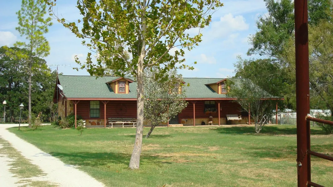 Beautiful custom log and rock home. Spacious kitchen with new appliances, granite counters and a unique copper sink. Open concept - kitchen- dining room - den, wood burning fireplace. Remodeled baths with beautiful cultured marble. Master bath has 2 sinks, 2 commodes, tub, separate shower, modern black faucets. Separated by two sets of French Doors is a large recreation room with bar and desk, hand crafted by Seller. From the rec room and yard is a lovely view of a pond. Also included is a three car garage/shop, barn with stalls, loading and squeeze chute. All on 4+ acres. Additional 40+ acres available. Easy access to Highway 6 and Waco, Temple or Bryan/College Station.