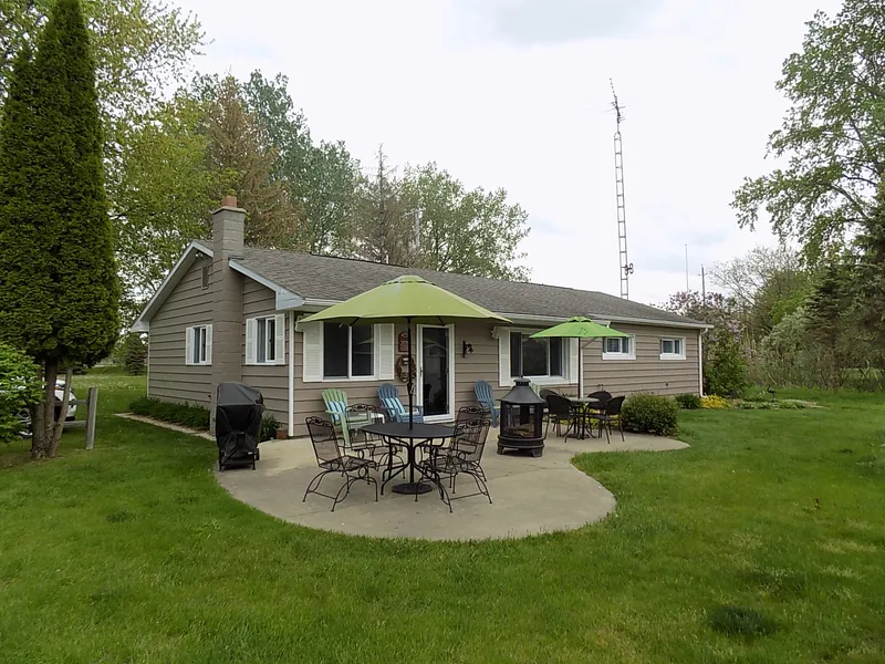 Beautiful 3 bdrm, 1.5 BA lakefront home with 211' of lake frontage on double lot with over 4 acres. This home features a den with stone surround gas fireplace, half bath, storage room and laundry area with a stackable washer and dryer. Updated eat in kitchen with granite countertop open to the living room with knotty pine walls, 3 bdrms with ceiling fans and an updated full bath with a granite vanity top. All appliances are included and most of the furniture is negotiable. Nice cement patio in back, well house and 24 x 38 garage with half bath offering plenty of storage for your toys. There is a canal along the south side of the property, this is a nice area to dock a boat. Great area for fishing, duck hunting and goose hunting on Wild Fowl Bay. This would be a wonderful vacation or retirement home, relax and watch the sunsets and enjoy your own private lake frontage. The seller is relat...