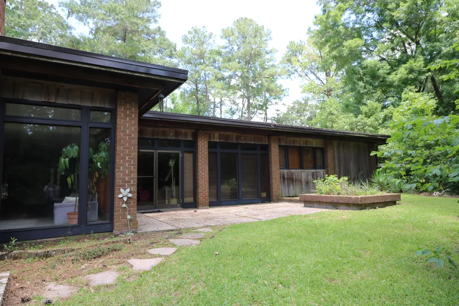 Mid Century Modern Stunner...lovingly built custom home nestled on 4+ acres in town. 4/3 home boasts expansive open floor plan. Living, den and dining flanked by wall of windows with view of beautiful private back yard. Kitchen with breakfast room, double ovens, island etc. Custom touches, cabinets and built-ins thru out the home are mahogany wood. Oversized bedrooms, split floor plan, master suite with master bath and office. 1/1 guest house/game room with tennis courts. Lovely grounds with mature hardwoods and landscaping, circle drive....A MUST SEE!!