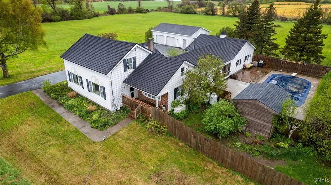 Welcome to your dream home in Adams Center, nestled in the highly desirable South Jefferson School District. This beautifully maintained 2,312 sq ft residence sits on 4 acres of serene countryside and offers the perfect blend of modern upgrades, outdoor luxury, and versatile living space. Outside, you’ll find a private retreat complete with a newer roof (2020), a brand-new well pump, a whole-house generator, and an upgraded propane heating system. Summer days are made for entertaining around the gorgeous inground saltwater pool, complete with a charming, covered pool hut. Car enthusiasts and hobbyists will love the four garage bays—two attached, and two more in a detached garage that also features a finished flex space perfect for a home gym, studio, or office. Step inside to a spacious and thoughtfully designed layout featuring 3 bedrooms and 2 full baths. The welcoming living room offers a cozy wood-burning fireplace and sliding doors that open directly to the pool area—ideal for indoor-outdoor living. The heart of the home is the updated chef’s kitchen with stainless steel appliances and a dedicated dining area perfect for entertaining. The oversized first-floor primary suite is a true sanctuary with a luxurious en-suite bathroom and a double-sided fireplace that adds warmth and ambiance to both the bedroom and adjacent laundry area. Upstairs, you’ll find two generously sized bedrooms offering comfort and privacy for family or guests. This is more than just a home—it’s a lifestyle. Don’t miss your opportunity to own this incredible property in a peaceful setting with every amenity you could ask for. Located just 20 minutes from the Fort Drum Main Gate, this property offers a convenient commute for military personnel and others affiliated with the base. This location also provides easy access to Watertown and Syraacuse. Schedule your private tour today!