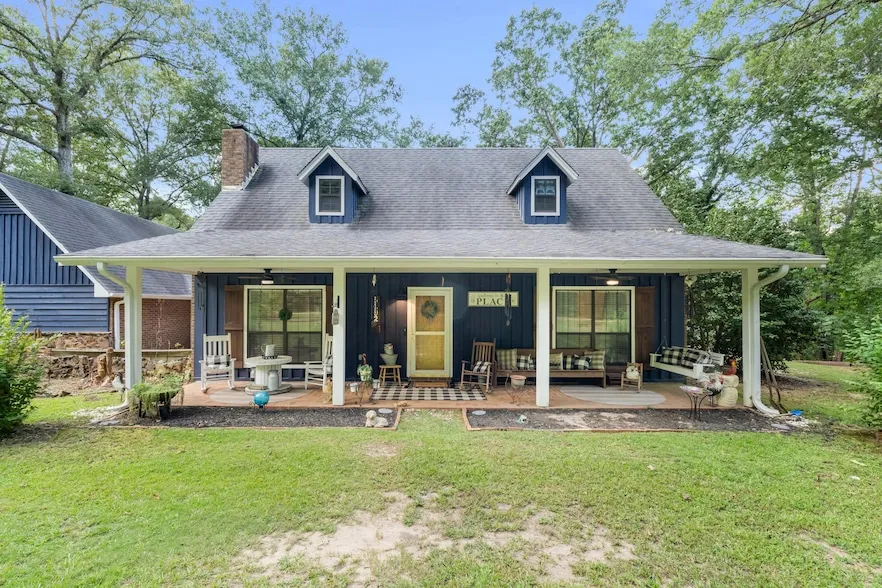 This beautiful 3BR/2BA home sits on 4 private acres and has been updated throughout. The open floor plan, fresh paint colors, and cabin-like charm make it warm and inviting. Enjoy balconies with peaceful views, a cozy German-smeared brick fireplace, and a sunroom opening to a courtyard with water hookups for gardening. The fenced backyard is perfect for pets, and the property features fruit trees, muscadine vines, and space for a garden. Several hiking trails, multiple shops, new central heat/air units under warranty, and many more updates make this home a must-see!