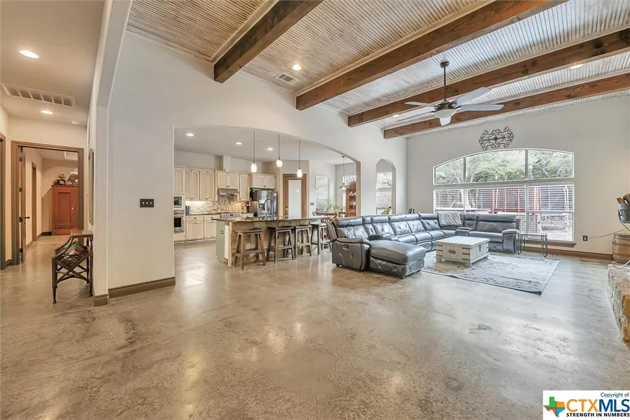 Behind the gates, in the heart of the Texas countryside, a hidden gem awaits. Nestled on 4 picturesque acres at 1325 County Rd 106 in Lampasas, Texas, this exceptional homestead boasts a 3,767 sqft custom home that sets new standards for country luxury living. The moment you step inside, you're welcomed by the grandeur of 10, 12, and 14-foot ceilings that grace every room. The designer kitchen, a true masterpiece, features custom country cabinets, exposed beam ceilings with tongue and groove details, and a stunning highlight - the dark granite counters. These countertops, not only add a touch of sophistication but also create a striking contrast to the warmth of the woodwork. An open floorplan with stained concrete floors seamlessly connects the spacious living areas, creating an inviting atmosphere that's perfect for both entertaining and everyday life. With 5 bedrooms and 3.5 bathrooms...