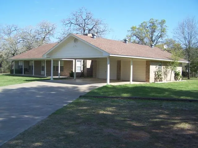 This three bedroom two and one half bath brick home sets on four picturess acres just out of Dime Box, Texas on paved Lee County Road 439. Built in 1997, this home includes central heating and cooling, double pane insulated windows, composition asphalt shingle roof, carpet and tile throughout, vaulted ceiling in the living area, wood burning fireplace, spacious master, indoor utility area with half bath, two car garage plus two car attached carport and front and back porches. The park like setting features Pine, Oak and other native and fruit trees, ornamental shrubbery, berry vines and areas for gardening.