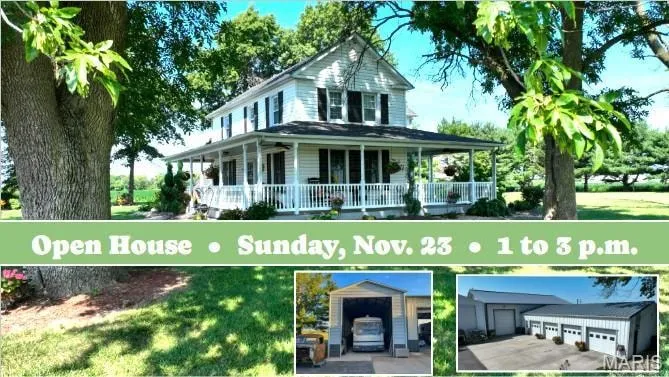 Mechanic s Dream on 4 Acres This property is built for those who need serious shop space. The crown jewel is the massive garage workshop, complete with its own bathroom and a professional-grade car lift perfect for mechanics, hobbyists, or anyone with big projects in mind. Alongside it, you ll find an RV garage and an additional storage garage, giving you room for equipment, vehicles, or toys of every size. The 3-bedroom, 1-bath farmhouse offers classic country comfort, featuring a wraparound front porch, a functional country kitchen, and spacious rooms with timeless character. Upstairs holds all three bedrooms, while the partial basement adds extra storage. Set on 4 acres along State Route 4, this property combines rural charm with unmatched practicality for anyone who lives to work in the shop. I-55 @ Exit 33.