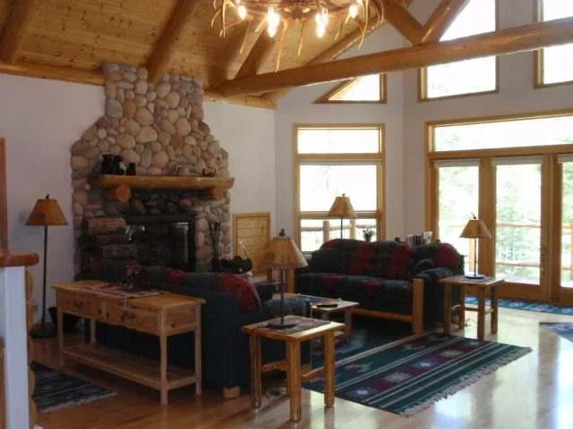Montana Riverfront Property for Sale. Well-appointed, custom log home located in a secure area on the Blackfoot River with phenomenal river frontage. 760+ feet of level access to the river made famous in John McLean's "A River Runs Through It". Close to Missoula for convenience, yet wildlife still abounds. Home has over 4500 finished sq. ft. Main level consists of an open kitchen/dining & great room with cathedral ceilings, river rock fireplace, wood flooring, gorgeous antler chandelier & French doors leading to the deck overlooking the river. Main level has a guest room with deck, full bathroom, & spacious master suite. Master suite has its own rock fireplace, walk-in closet & private bath. Upper level features guest room, full bathroom & office area. Inviting lower level living quarters is useful with 2 bedrooms, full bath, utility room, kitchen & large family/game room with fireplace ...