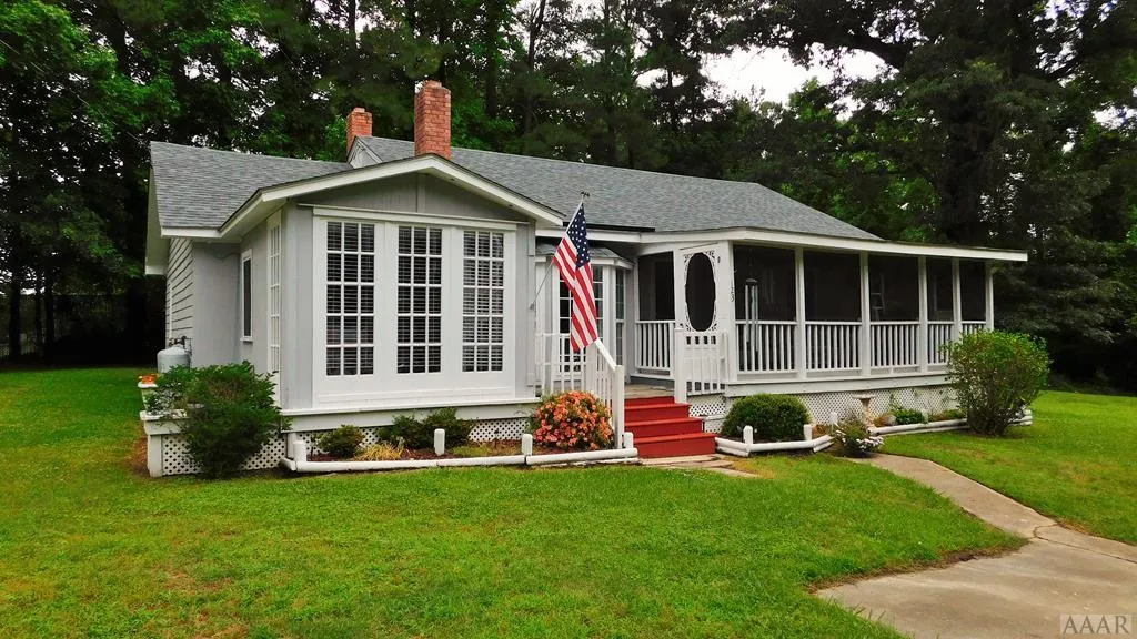 This is a sweet cottage with canal front water view that leads to the Pasquotank River. Screened porch on the front to enjoy the morning sunrise. Both bedrooms are good size and the den is off the great kitchen that is open to light, bright dining room. The living room is spacious and opens to the screened in porch. New roof in 2018 with 30 year architectural shingles, new paint outside and all the mouldings inside have been painted, HVAC is 8 years old with a 10 year warranty, plumbing under the house to add bath. Septic has been pumped and inspection. Come and see. 24 hr notice please.