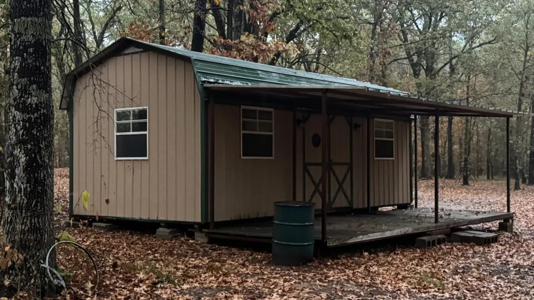 The property features a cozy, fully insulated 2-bedroom cabin, complete with custom-built large bunk beds, two A/C window units, and two lofts ideal for storage or kids. A custom-built shower house, outhouse, and covered front porch add to the rustic charm. Though off-grid, the property is ready for a generator or solar power, offering flexibility for future customization. The area is also excellent for drilling water wells, with access to the artesian aquifer about 360 feet deep.