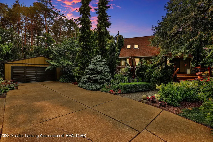 Featured on HGTV and in Hour magazine! Updated 2-bedroom 1.5 bath home on 4.2 private acres w/expansive views of stunning gardens from front or back decks! A long drive takes you to the house nestled by nature to the front deck and into the foyer lined with built in shelves. Enter the great room with 2 story vaulted ceiling, skylights, slider to the front deck, a floor to ceiling brick fireplace & newer flooring all seamlessly blending into the dining room with a slider to the back deck. The updated kitchen with quality finishes boasts newer cabinets, flooring, granite counter tops, tile backsplash and unique tin ceiling all transitioning into the first-floor laundry. A creatively inspired half bath completes the first floor. Two upstairs bedrooms with hardwood floors have views of the unparalleled back yard setting and gardens. An updated full bathroom with luxe tile step in shower completes the space. A clean basement is waiting for your finishing touches. The house has exceptional outdoor living with a large garden, firepit, and room to play or expand the house! The home is close to the highway and shopping, 20 minutes to MSU and 30 minutes to Flint.