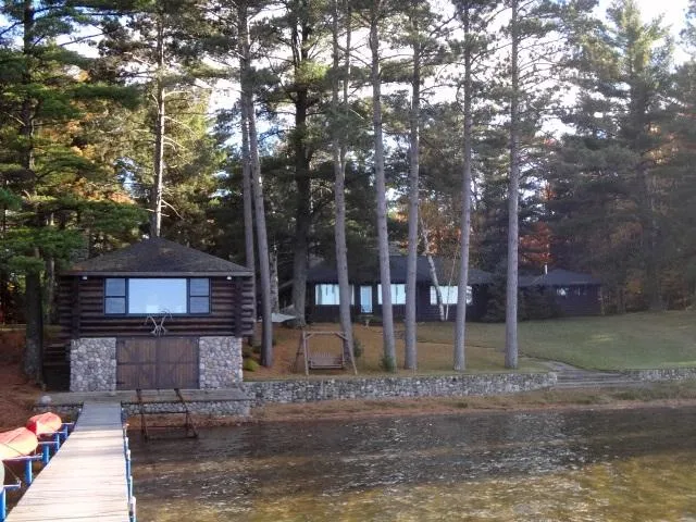 FENCE LAKE ESTATE: Nostalgia done well! Sprawling over 4 acres with 300' of prime sand frontage on Fence Lake, this beautifully maintained property will give you the feeling of yesteryear, but better! There is a 3BR/2BA Lodge Style Main House, 2BR/1BA Log Guest Cottage, a Game Room/Bunk House at water's edge above the Dry Boat House, a 3+ car Log Heated Garage, a wood burning Sauna w/walkout private outdoor Shower, Tennis Court/Basketball Court and more! Beautiful log construction. Riverstone fireplaces in Main House, Guest Cottage and Bunk House. Many updates such as new cabinets, Subzero and Viking appliances in updated kitchen in Main House, new furnaces, electrical outlets, roofs, whole house humidifier in Main House plus more. Gentle slope, almost level to the pure sand lake frontage, beautifully landscaped, underground sprinkler system, main house security system. Too many features...
